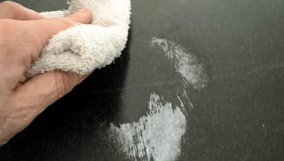 Scratches: Most scratches will disappear with a dab of Slate Oil. To permanently remove a deep scratch, use 120 or 220 grit sandpaper (depending on the depth of the scratch), sand the scratched area in a circular motion until the scratch is almost gone, then use 400 and 800 grit sandpaper to finish.